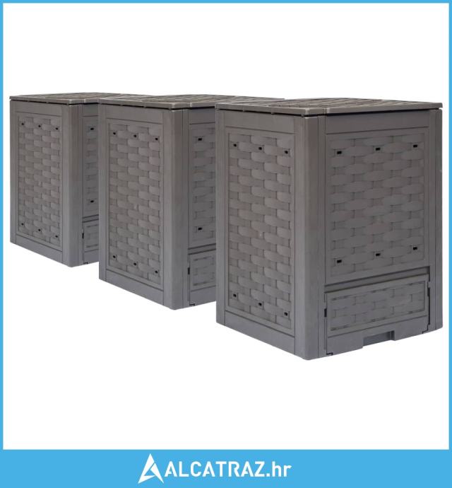 Vrtni komposteri 3 kom smeđi 60x60x83 cm 900 L plastični ratan - NOVO