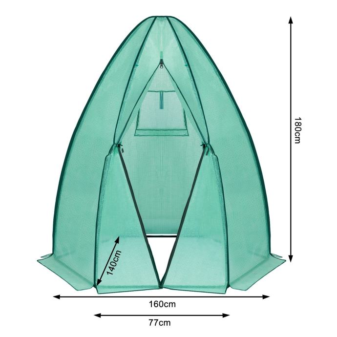 VRHUNSKA KVALITETA: Folija je izrađena od ekološkog PE-a s mrežastim pločama i ima visoku debljinu od 130 g/m2. Materijal je otporan na kidanje, vodootporan, otporan na habanje, koroziju i UV zračenje. Stabilna konstrukcija kućice za biljke sastoji se od čeličnih cijevi s praškastim premazom promjera 16 mm i otporna je na hrđu.