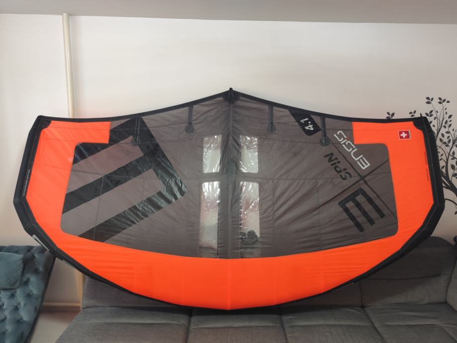 Prodajem Wing foil Ensis Score 4.1m. Polutvrde ručke. Leash u kompletu. Idealan za srednji i jači vjetar. Kupljen u lipnju 2025. Korišten u moru oko 10 sati. Jedna naljepnica od 2cm na krilu. Nikad većeg oštećenja.