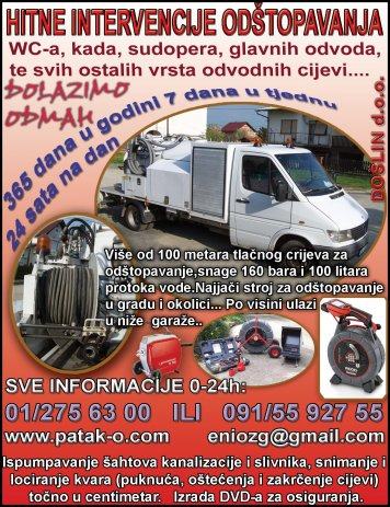 Odštopavanje(čiščenje,odčepljivanje,odstopavanje.odstopavanje,pročiščavanje) odvoda sudopera,Wc-a ,slivnih voda,glavne kanalizacije,vertikala ,horinzotala te svih ostalih odovoda koji postoje najsuvremenijom opremom te jedinim strojem u gradu(Konbinirana WOMA, sa usisavanjem )za čiščenje punih šahtova ili septičkih jama.