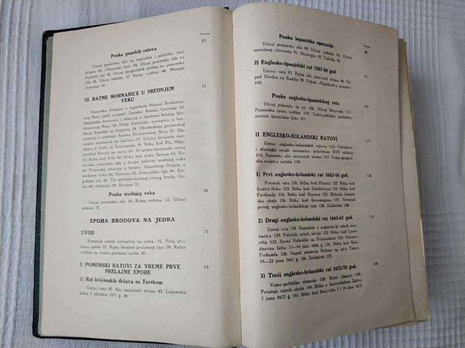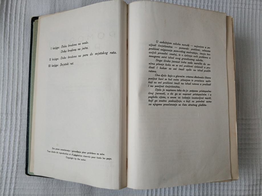 Tri sveska u jednom uvezu: 1. Doba brodova na vesla – Doba brodova na jedra; 2. Doba brodova na paru do Svjetskog rata; 3. Svjetski rat.