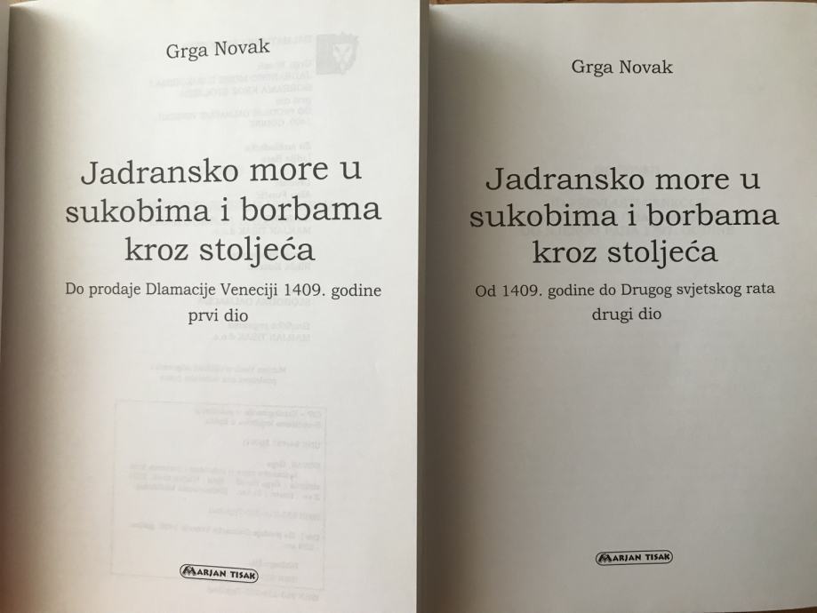 Grga Novak: Jadransko more u sukobima i borbama kroz stoljeća, 1. i 2.
