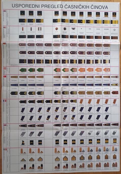 USPOREDNI PREGLED/TABLICA ČASNIČKIH ČINOVA PLAKAT