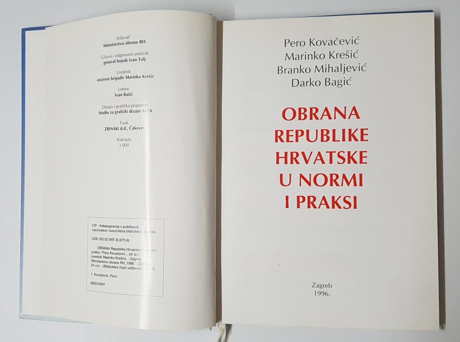 VOJNA KNJIGA i 2 POSTERA SA HR OZNAKAMA (OBRANA RH. U NORMI I PRAKSI)