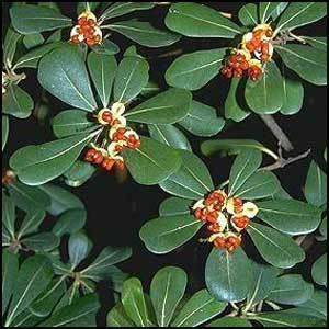 Zimzeleni grm ili malo stablo s vrlo mirisnim cvjetovima i dekorativnim crvenim sjemenkama.