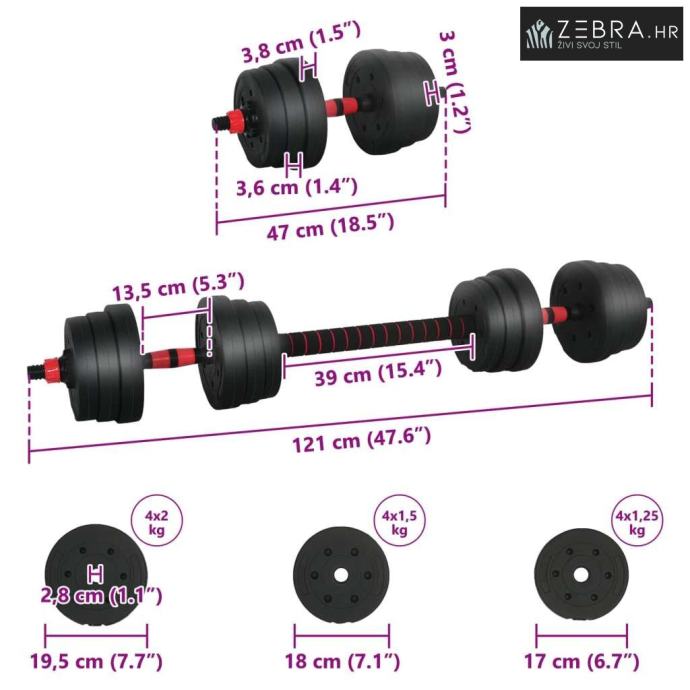 Ovaj set podesivih bućica nudi fleksibilno rješenje za vježbanje, savršeno ako želiš unaprijediti svoju fitness rutinu. Ima moderan dizajn koji je jednostavan i funkcionalan, što ga čini idealnim dodatkom za svaku kućnu teretanu. S crnom završnom obradom, bez problema se uklapa u svaki kutak doma, pružajući ti mogućnost da gradiš snagu i toniraš mišiće kako želiš.