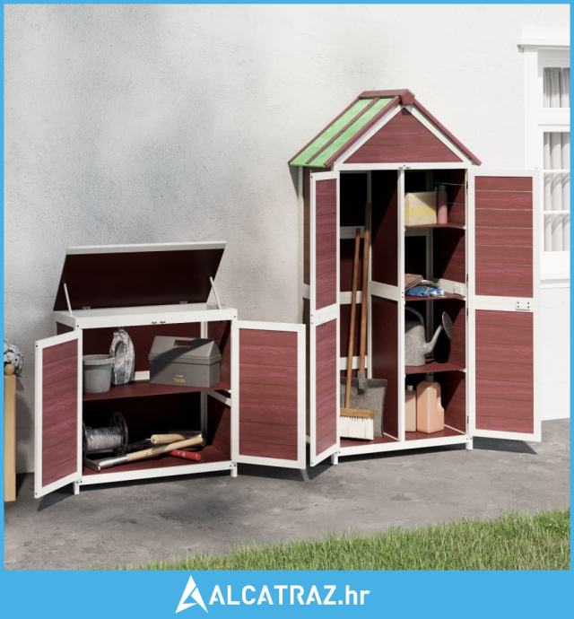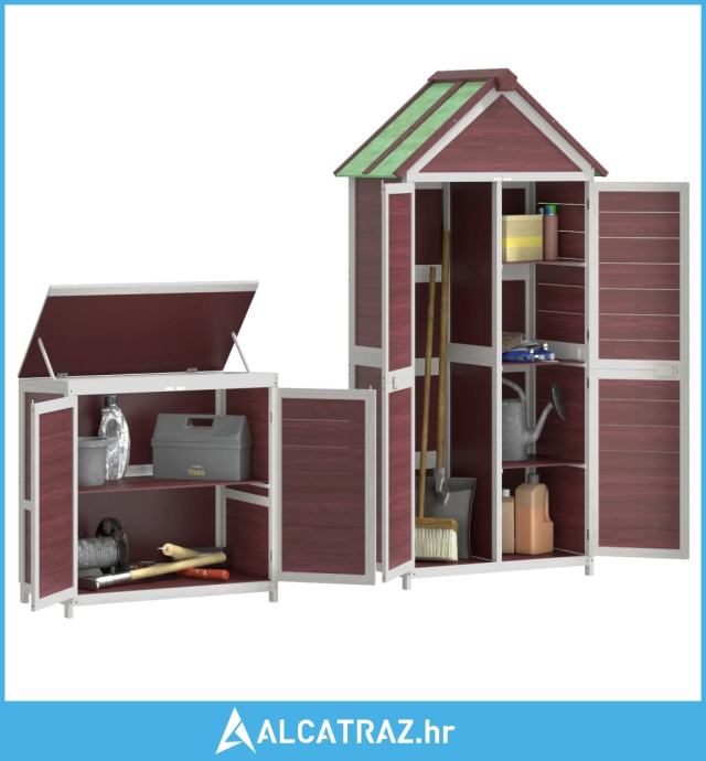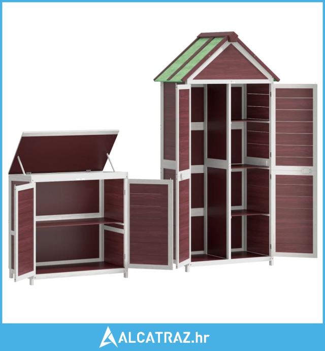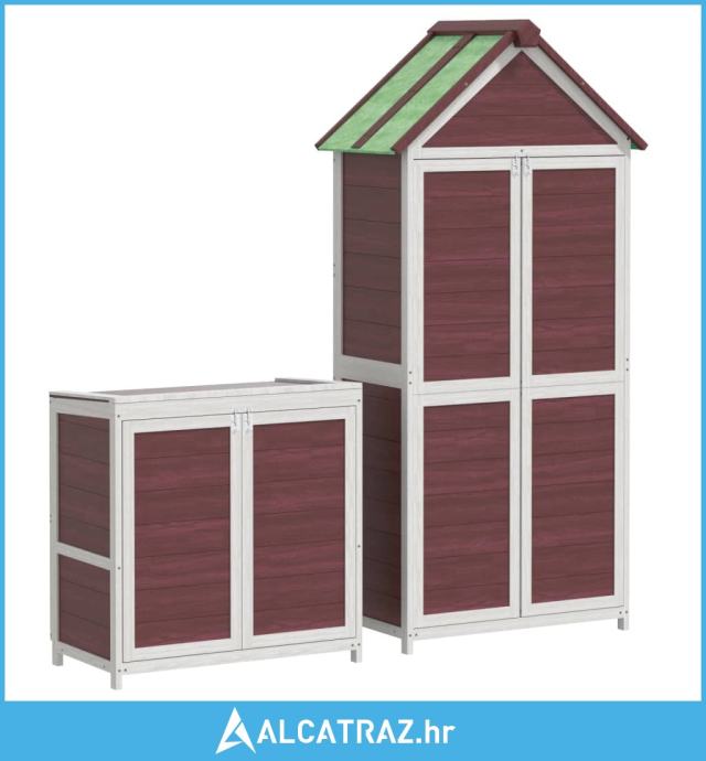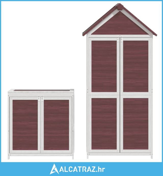 2-dijelni set vrtnog spremišta za alat boja kave od borovine - NOVO