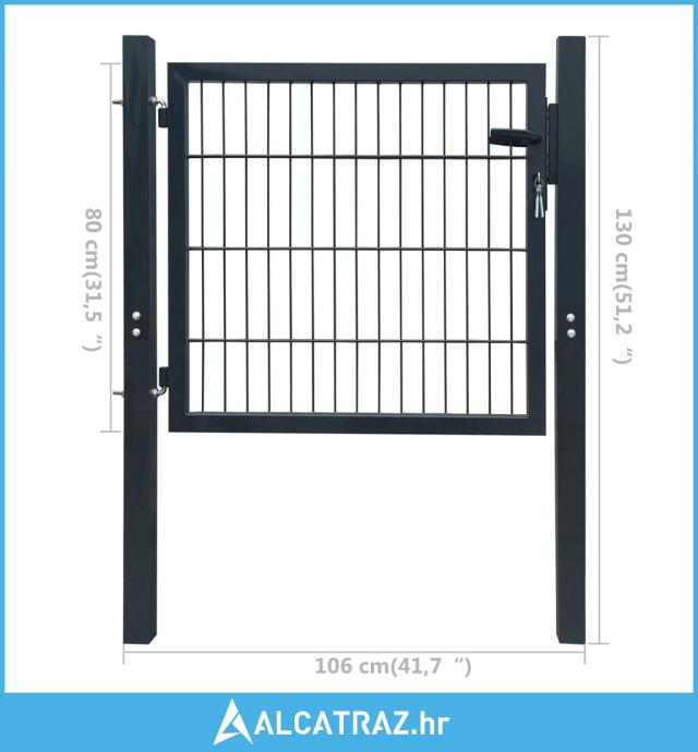 2D vrata za ogradu (jednostruka) antracit siva 106 x 130 cm - NOVO