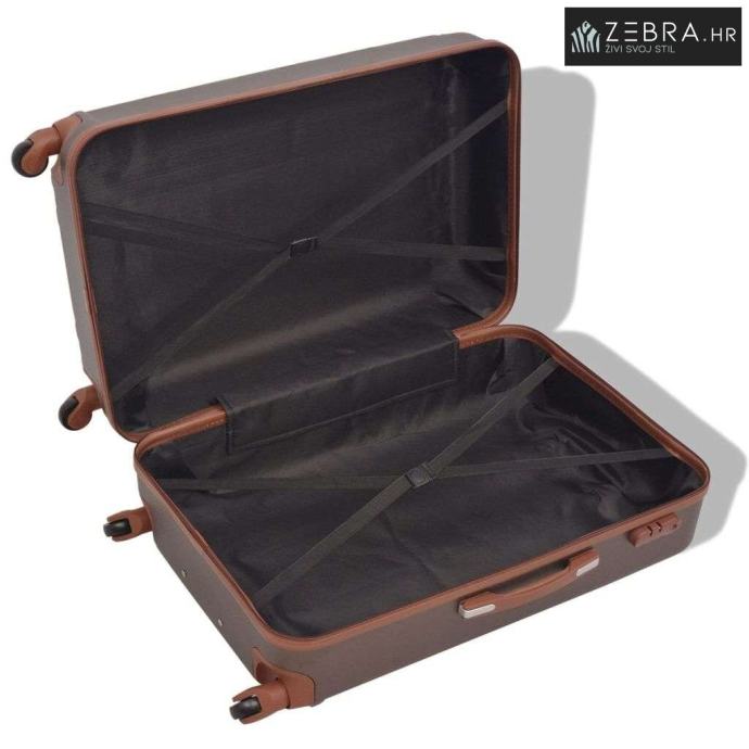 Vrlo izdržljiv i lagan, ovaj komplet čvrstih kofera bit će izvrstan pratilac za svako putovanje. Dostava uključuje tri kofera u različitim veličinama i jednu toaletnu torbicu a manji koferi se mogu pohraniti u veće radi uštede prostora.