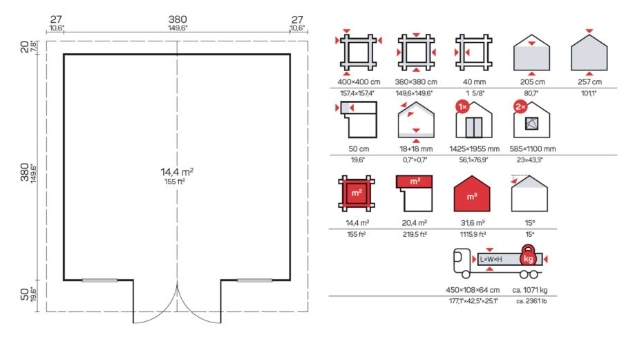 Dimenzije zidova (širina x dužina): 380 x 380 cm