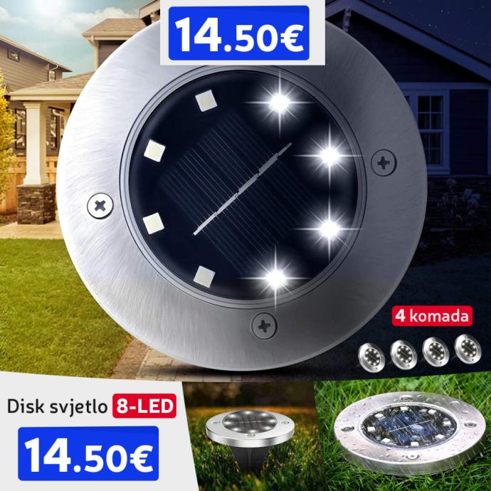 Izvor svjetlosti: solarni paneli + 8 LED svjetiljke