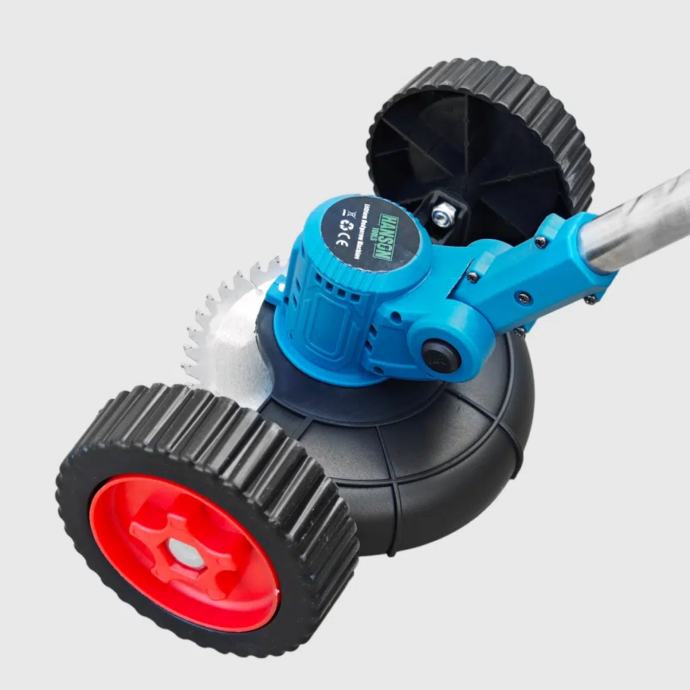 Aku trimer na kotačima predstavlja idealnu kombinaciju trimera i kosilice za kućne vrtove, okućnice i travnjake. Zahvaljujući kotačima za stabilnost, aku pogonu i bogatom setu reznih dodataka, omogućuje ravnomjernu i sigurnu košnju bez zamaranja leđa
