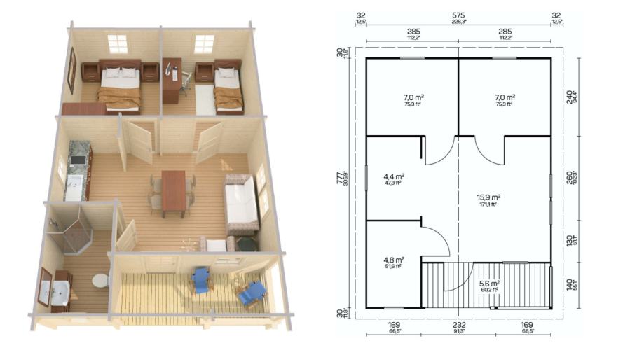 Set Maridinih drvenih kuća debljine 70 mm uključuje sljedeće: