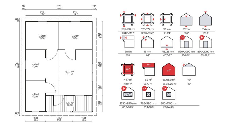 Sve drvene kuće od 70 mm, dječje kućice za igru, nadstrešnice, ljetne kućice i garaže sadrže standardni set: vrata, prozore i opremu za pričvršćivanje koji čine montažu kućica jednostavnom i brzom.