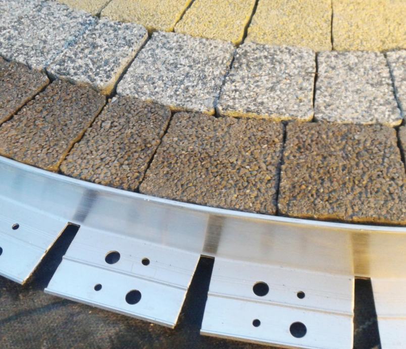 Alu profil u L-obliku ALUFLEX AF za ravne i neravne linije kao hidroizolacijska zaštita od prodiranja vlage, za rub asfalta ili odvajanje kamena, keramičkih pločica i razpršenog materijala, kao što su šljunak, drvo čips i trave ... Aluminijski rubnjaki izrađeni su od visoko kvalitetnog aluminija T6 6063, koristi se za proizvodnju zrakoplova, što je zajamčeno 25-godišnjim jamstvom. Imaju otpornost na temperaturu, npr. vrući asfalt, inovativni zaobljeni rub spriječava ozljede, posebni utori omogućuju spajanje duž cijele duljine. Glavne prednosti su jednostavnost ugradnje, bez dodatnih savijanja i bez troškova održavanja. Spajanje je jednostavno pomoću originalnih spojnih elemenata ALUFLEX JOINsmall AFJS za AF19 I ALUFLEX JOINbig AFJB za AF26,38,51,64,77,102 i 150. Za pričvršćivanje možete koristiti metalne ćavle dužine od 250 ili 300 mm, za pričvrćivanje na tvrdu površinu ili beton upotrebite PVC tiple s vijkom.