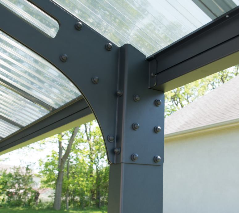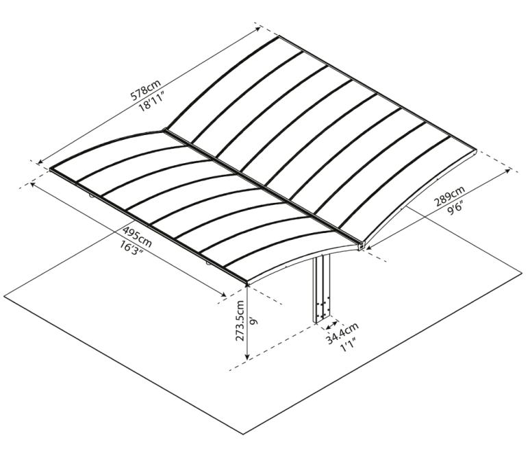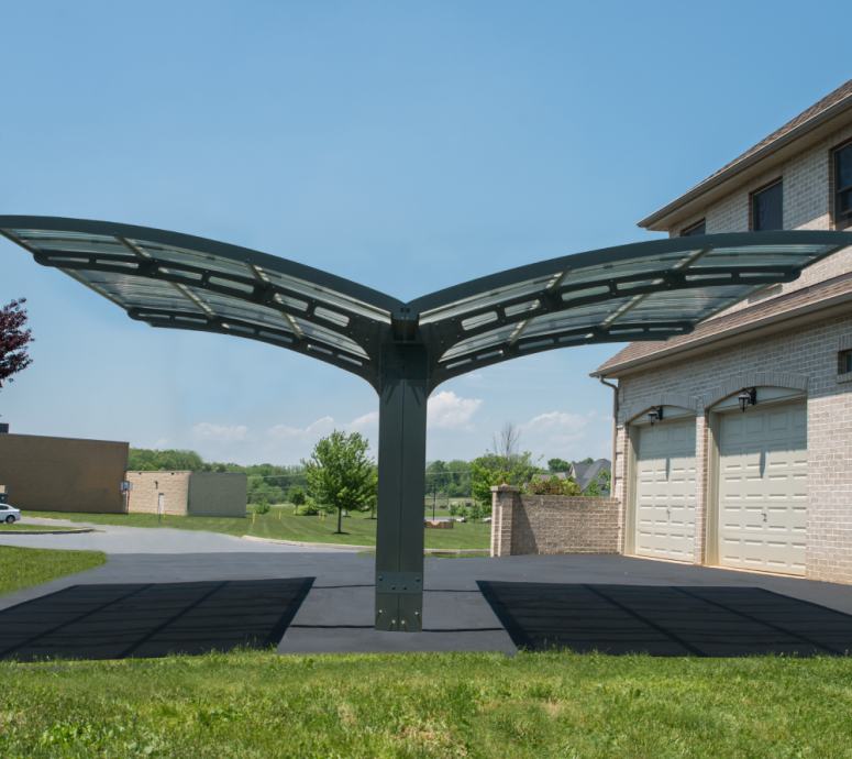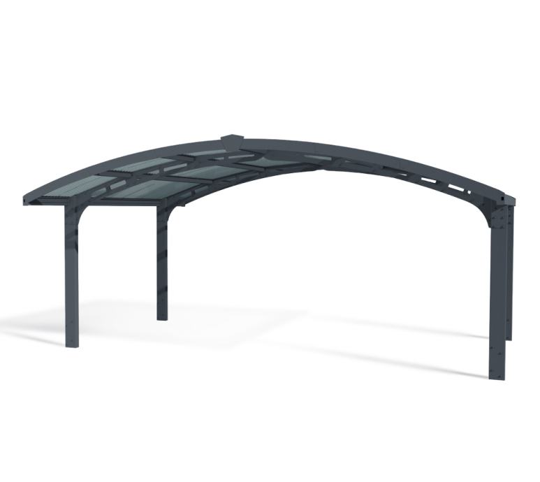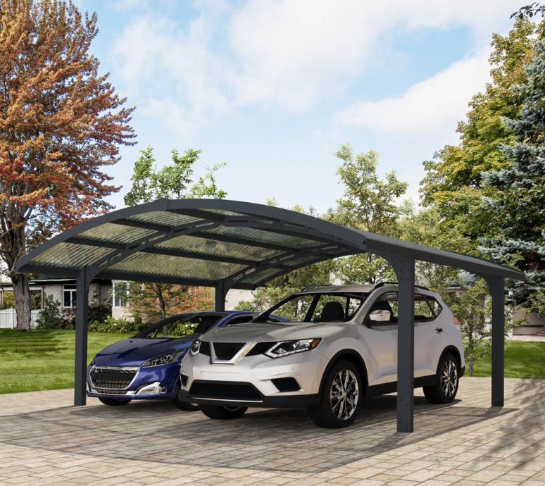 Konzolni nadstrešnica za automobil u obliku slova T ili klasična nadstrešnica za automobil s 4 potporna stupa i zasvođenim krovom - oboje je lako moguće s dvostrukim nadstreškom za automobil Arizona Wave. Visokokvalitetna aluminijska konstrukcija premazana prahom prekrivena je 100% UV-otpornim polikarbonatnim krovnim pločama i lako podnosi sve vremenske uvjete. Zahvaljujući inovativnom sustavu povezivanja panela i profila, nadstrešnica za automobil Arizona Wave tvrtke Palmar - Canopia se brzo i jednostavno postavlja.