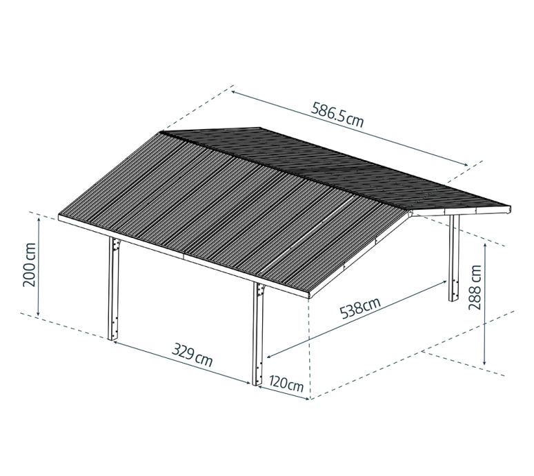 Aluminijska dvostruka nadstrešnica Sydney Apex Crna 587 x 538 x 288 cm