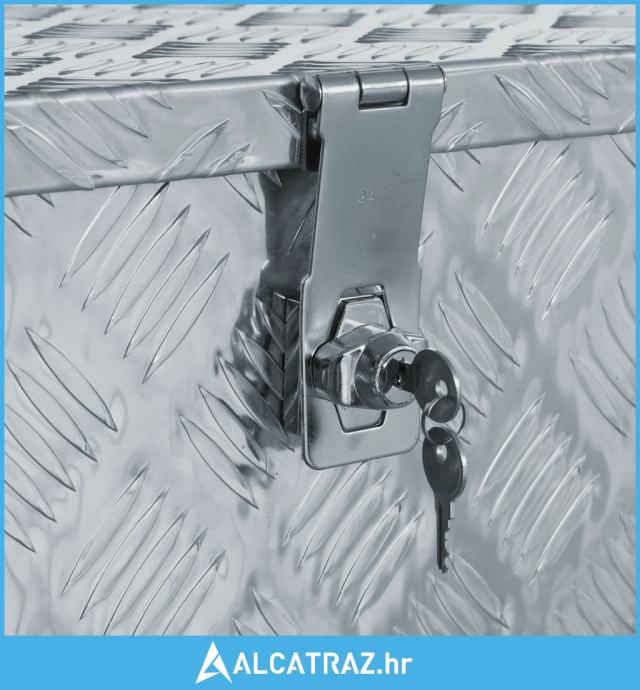 Napravljena od visokokvalitetnog valovitog aluminijskog lima, ova kutija za prikolicu otporna je na hrđu i izdržljiva. Kutija za prikolicu ima prostranu unutrašnjost za spremanje vašeg alata, pribora ili opreme, a također je opremljena sustavom zaključavanja za dodatnu sigurnost (uključena 2 ključa).