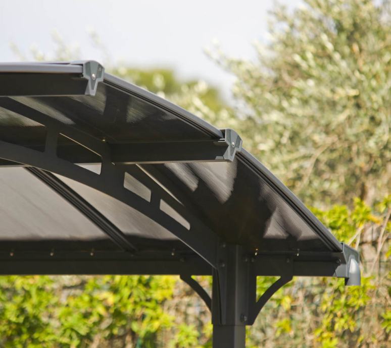 Izuzetno stabilan lučni nadstrešnica atraktivnog dizajna. Čvrsta aluminijska konstrukcija presvučena prahom.