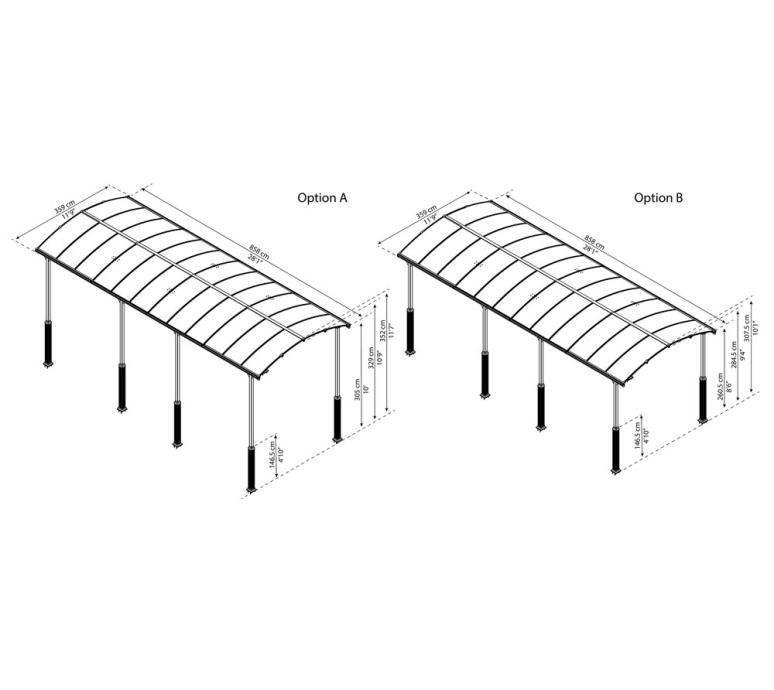 Aluminijska nadstrešnica Arcadia Alpine 8500 Antracit 858x359x352 cm