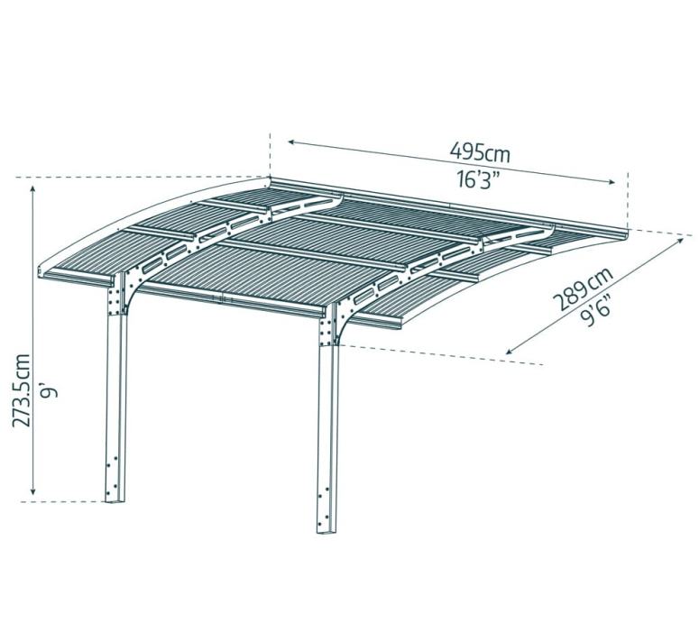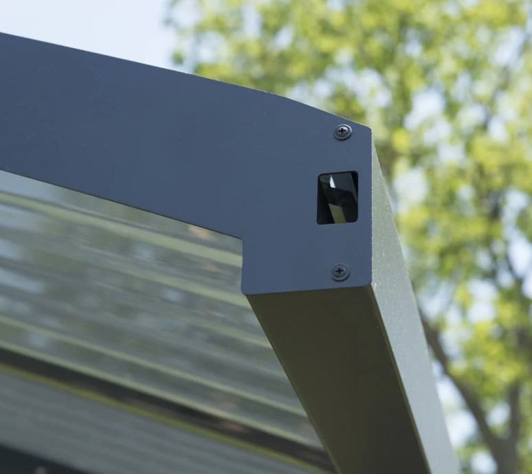 Samonosivi oblik s modernim lučnim krovom osigurava izvanredan izgled dok je u isto vrijeme vrlo funkcionalan. Budući da se konstrukcija nadstrešnice za automobile temelji na 2 robusna stupa, postavljanje nadstrešnice za automobile Arizona Wave jednostavno je, čak i na uskim parcelama. Visokokvalitetna aluminijska konstrukcija premazana prahom prekrivena je 100% UV-otpornim polikarbonatnim krovnim pločama i lako podnosi vjetar i vremenske uvjete. Zahvaljujući inovativnom sustavu povezivanja panela i profila, Arizona Wave nadstrešnica tvrtke Palmar - Canopia postavlja se brzo i jednostavno.