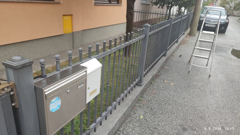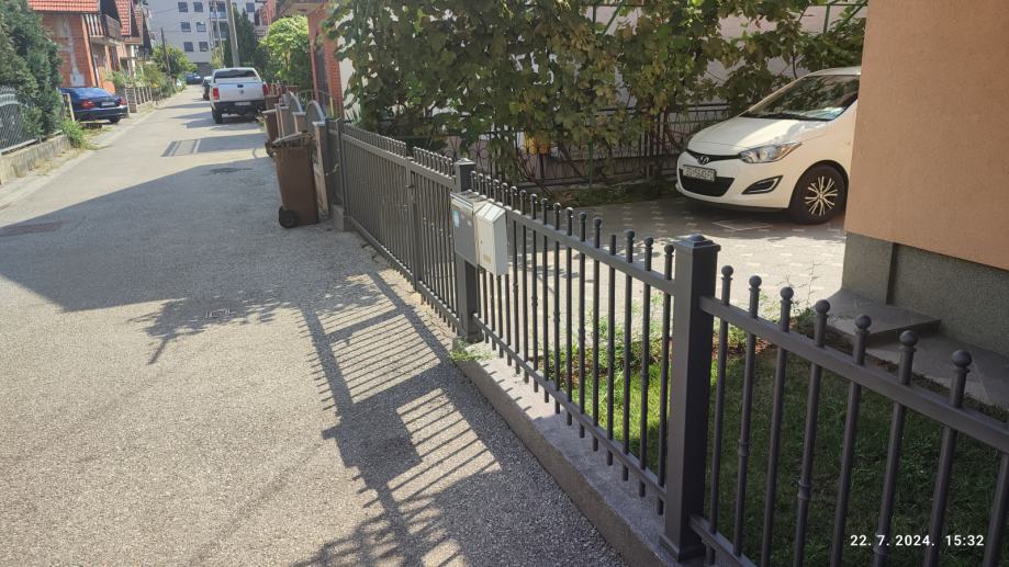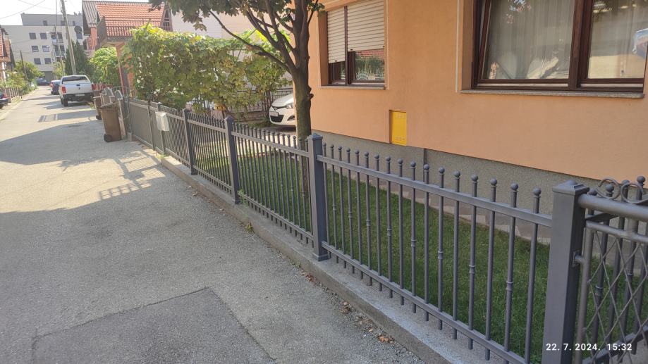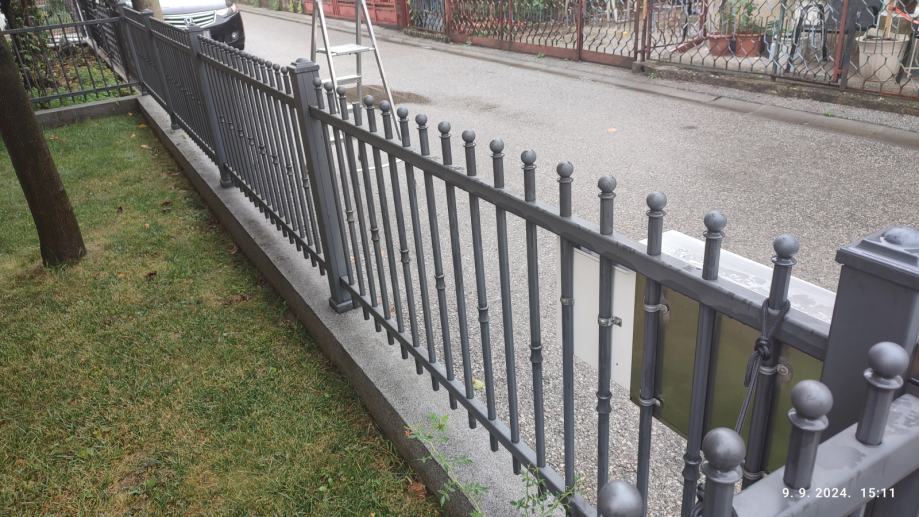 Prodajem kvalitetnu aluminijsku ogradu (čvrsta legura) antracit boje. Svojim izgledom slijedi tradicionalne kovane ograde (vertikalne palice promjera 20 mm koje na gornjoj strani završavaju kuglicom; polja se sastavljaju bez zavarivanja i bez vidljivih spojeva vijaka, na vrlo jednostavan način, tako da vam za montažu nije potreban majstor. Ograda je praškasto bojana i sušena u peći na 200*C zbog čega je visoke površinske čvrstoće, otporna na ogrebotine, vanjske utjecaje sunca, vlage, korozije i soli. Ograda je vječna i ne zahtijeva nikakvo održavanje, izuzev pranja čistom vodom jednom godišnje.