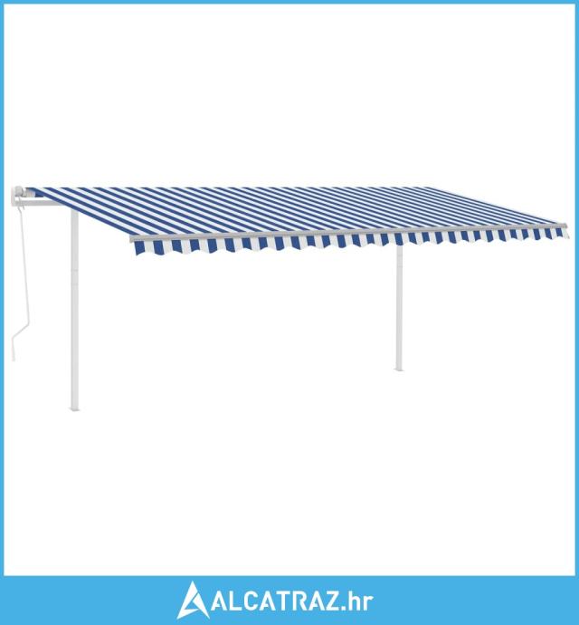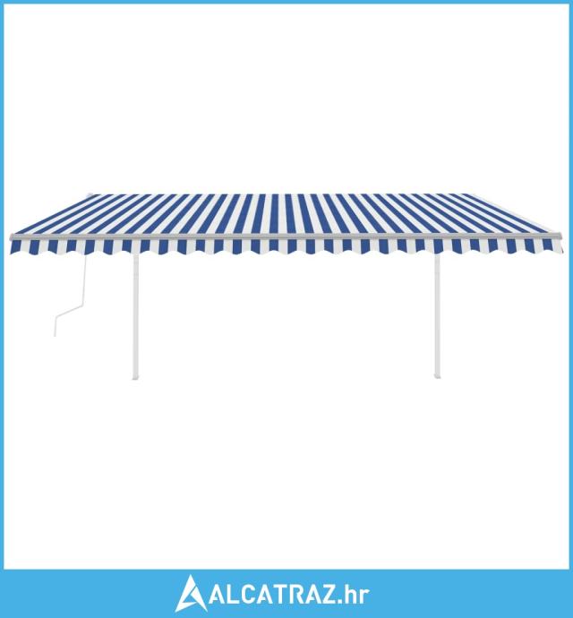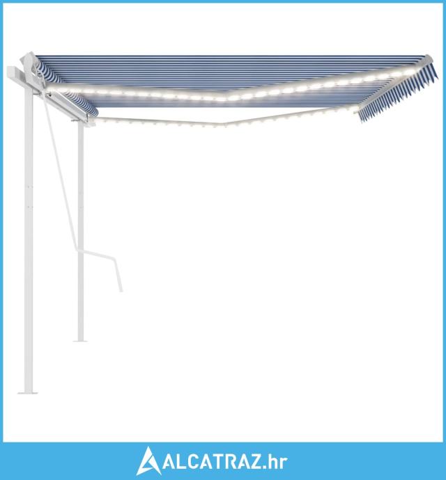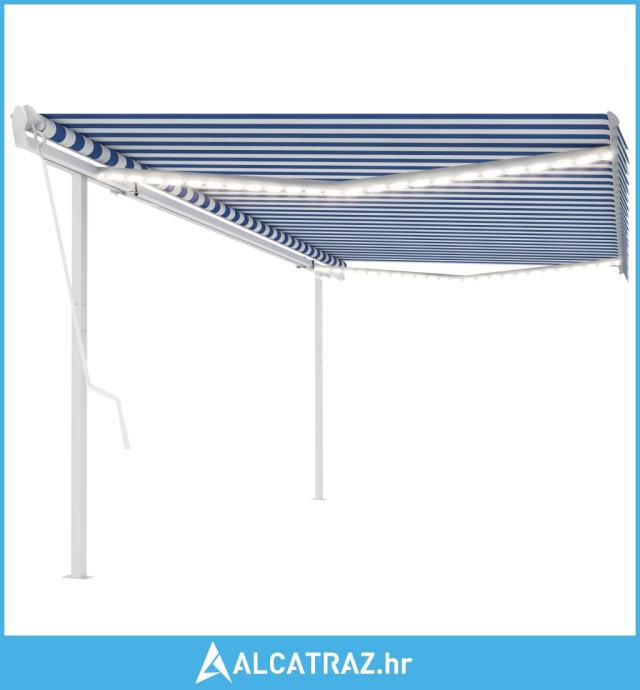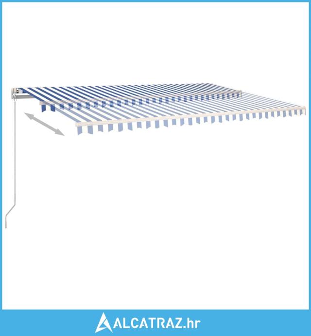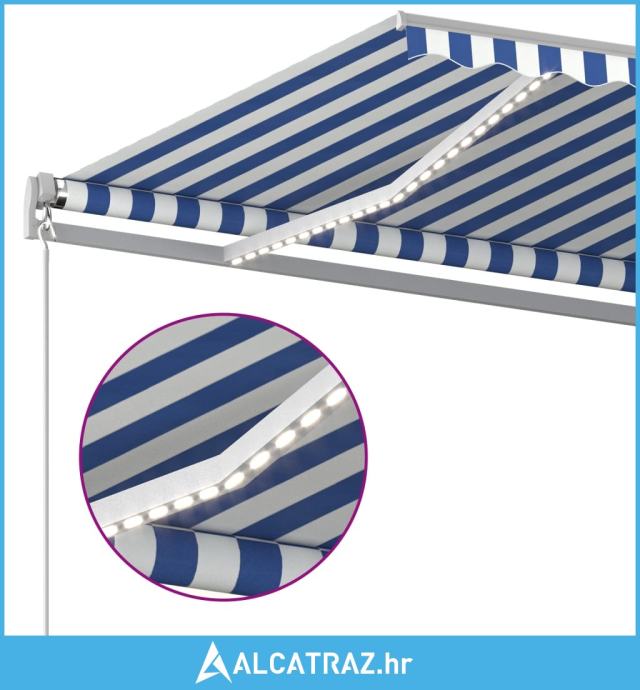 Automatska tenda sa senzorom za vjetar LED 5x3,5 m plavo-bijela - NOVO