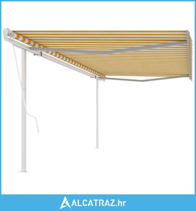Automatska tenda na uvlačenje sa stupovima 5x3,5 m žuto-bijela - NOVO