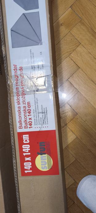 Prodajem neraspakiranu balkonski pregradu Sunfun.Dimenzije 140 X140. Cijena 30 eura.