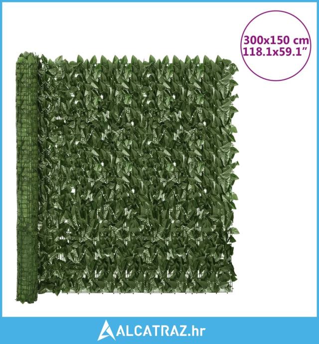 Balkonski zaslon za privatnost s tamnozelenim lišćem 300x150 cm - NOVO