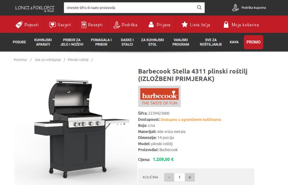 Prodajem novi Barbecook Stella 4311 plinski roštilj.
