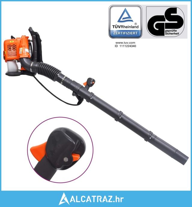 Zahvaljujući snažnom dvotaktnom motoru, puhač ima protok zraka velike brzine i kad se pokrene, stvorit će vihor koji će pomoći u skupljanju otpalog lišća. Ručka kojom se upravlja palcem i podesivi otvor uvelike olakšavaju vaš posao čišćenja. Zahvaljujući dizajnu ruksaka sa širokim naramenicama, vrlo je udoban za dulju upotrebu.