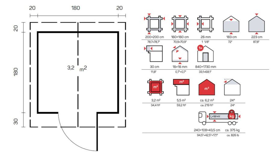 Dimenzije zidova (širina x dužina): 180 x 180 cm