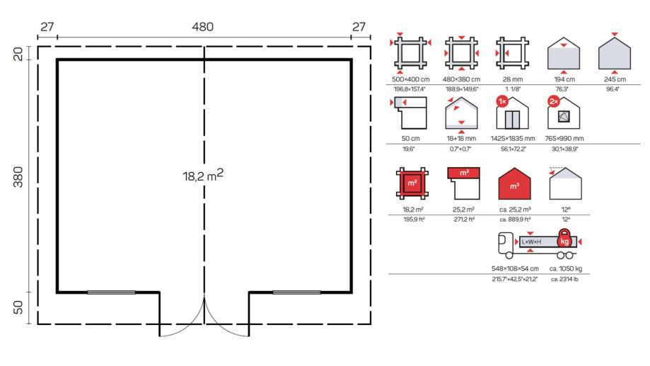 Dimenzije zidova (širina x dužina): 480 x 380 cm