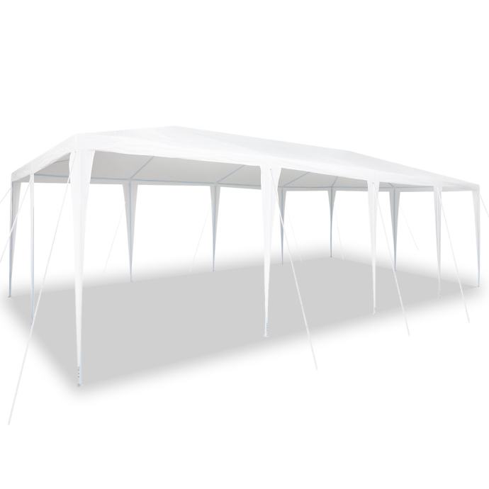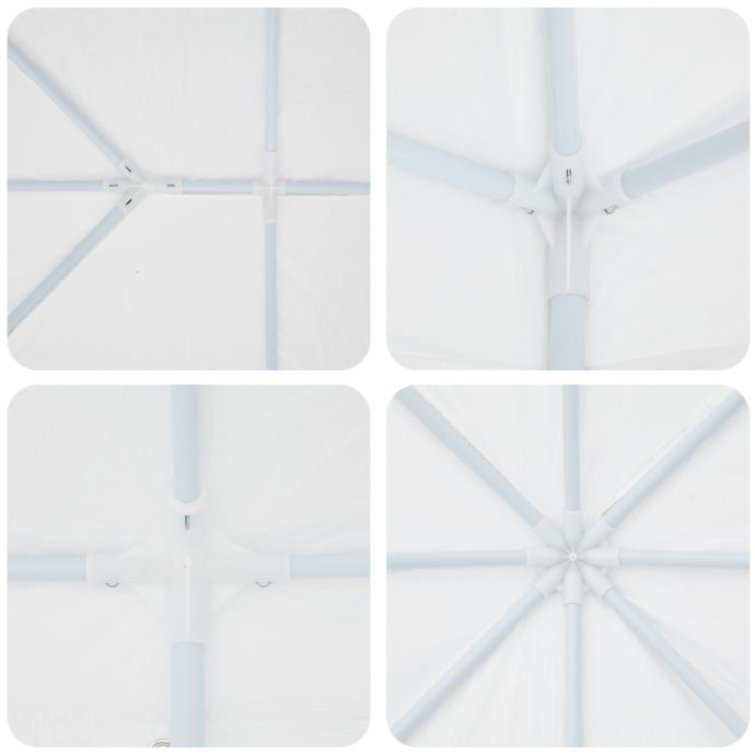 Ovaj šator za zabave je odličan izbor za veća okupljanja na otvorenom, pružajući prostran dizajn od 8x4 metra koji će se savršeno uklopiti u svaki vrt ili terasu. Njegova elegantna bijela boja dodaje dašak stila i stvara ugodnu atmosferu za objedovanje, zabave ili opuštena druženja.