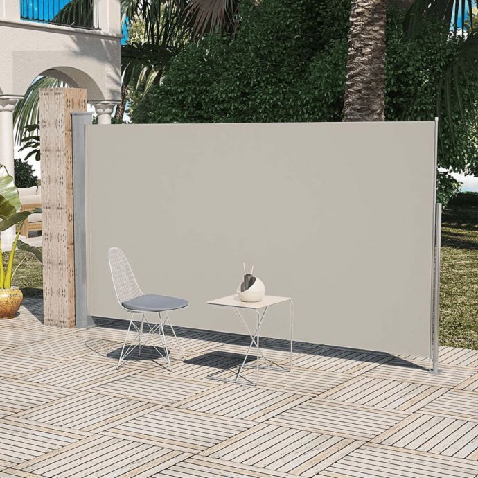Ova bočna tenda nudi učinkovit način da se nosi s vjetrom, suncem, te pruža dodatnu privatnost. Moderan i jednostavan, on je popularan izbor kako za kućnu uporabu, tako i za restorana. Zaslon je izrađen od UV otporan, otporan na habanjog poliestera. Kazeta je instalirana na zidu u okomitom položaju, a uvlačenja tenda je izvućena ravno iz zida. Širina tende je podesiva na do 300 cm. Tenda također ima automatsku funkciju roll-natrag. Isporuka uključuje i stup koji se može pričvrstiti za tlo.