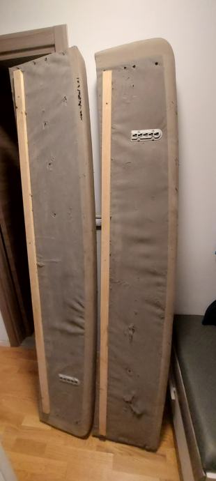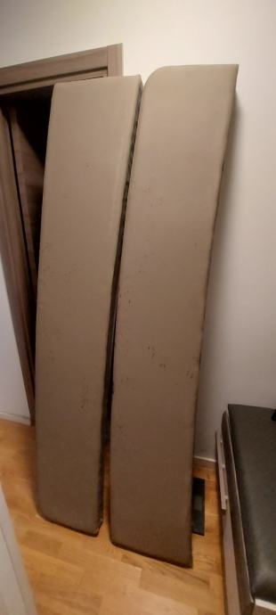 prodajem oba bočna dijela ili stranice Mediteran kreveta kupljenog u Emezzete. Oba dijela sam mijenjao i tapecirao cijeli krevet sa novim stranicama pa su mi ta oba viška pa ako netko ima isti krevet moze imati rezervu ili prenamijeniti u stolac za sjedenje van u vrtu,garazi,balkonu ili slično. Imaju ostecenja u vidu guljenja umjetne kože na njima pa zato i jesam tapecirao ponovo cijeli krevet. Veličina stranica je 210 x 35 cm širine i 10 cm debljine. Split