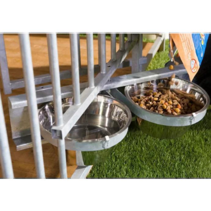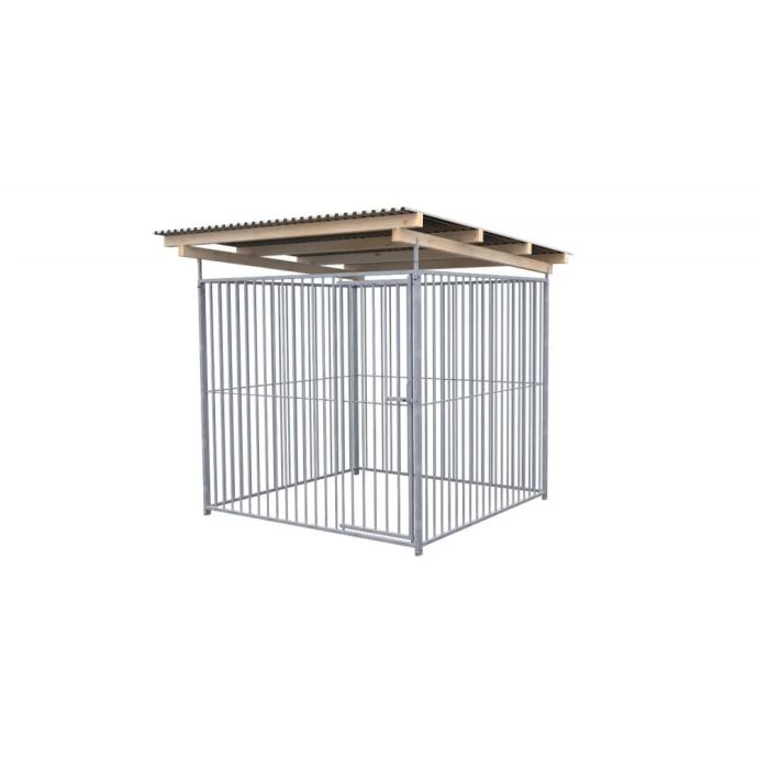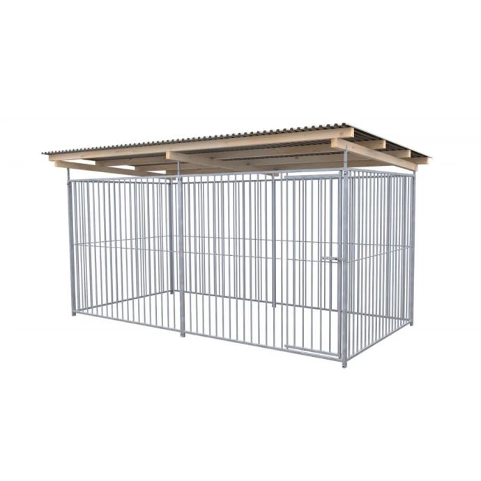 Kućica se u potpunosti sastoji od metalnih elemenata. Tako vaš pas može promatrati okolinu sa svih strana. Zaklon od sunca, vjetra i kiše mogu pružiti postojeći objekti uz koje će se graditi uzgajivačnica.
