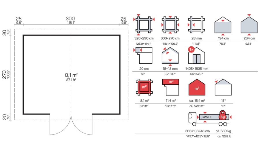 Dimenzije zidova (širina x dužina): 300 x 270 cm