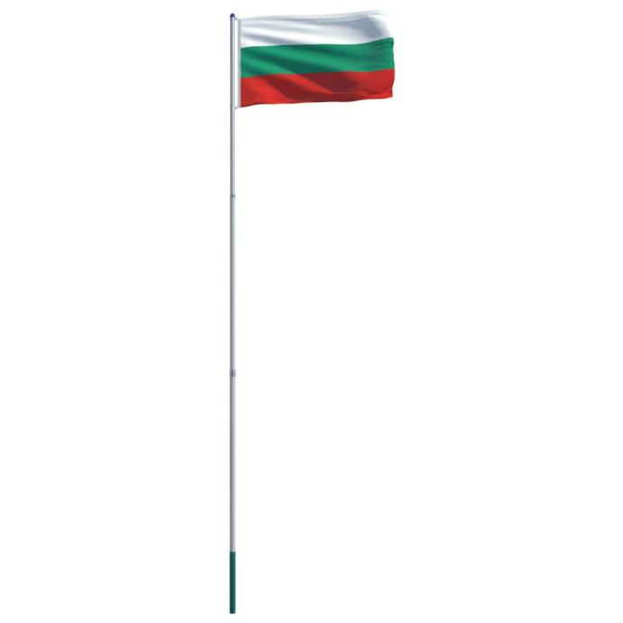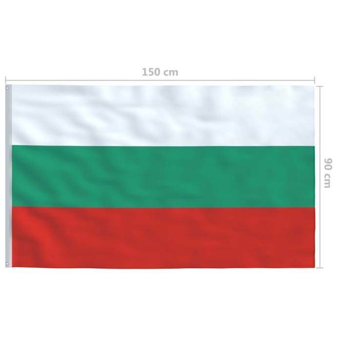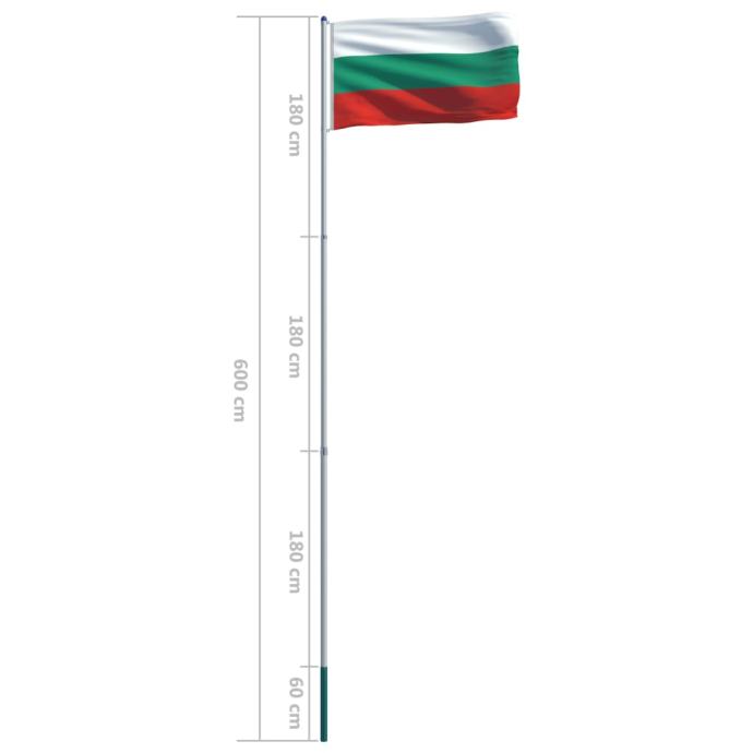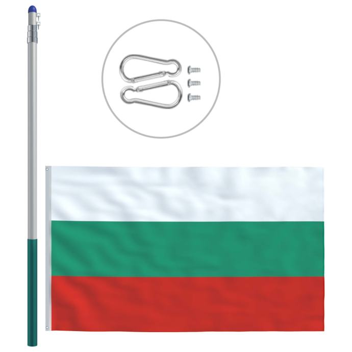 Bugarska zastava napravljena je od izdržljivog poliestera i opremljena dvjema čvrstim mjedenim kopčama kako bi se osigurala dugotrajna upotreba. Uz to, zastava ima ojačane rubove i dvostruke šavove kako bi se spriječilo kidanje. Zahvaljujući jednostavnom sustavu spajanja, stup za zastavu može se začas postaviti, a visina se može mijenjati zahvaljujući njegovom teleskopskom dizajnu. Izdržljivi umetak za tlo omogućuje da se stup zabode u zemlju i ostane na mjestu. Uz uključeno uže i prstene, možete dizati i spuštati svoju zastavu bez problema.