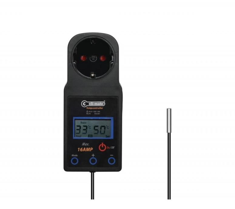 CLI-MATE® termostat CLI-MATE Thermostat 16A je izravni regulator temperature grijača/klima uređaja. Izrađen od vaše plastike, sposoban izdržati visoke temperature. Digitalni zaslon za jednostavno postavljanje. Postavka memorije se ne briše čak ni nakon nestanka struje.
