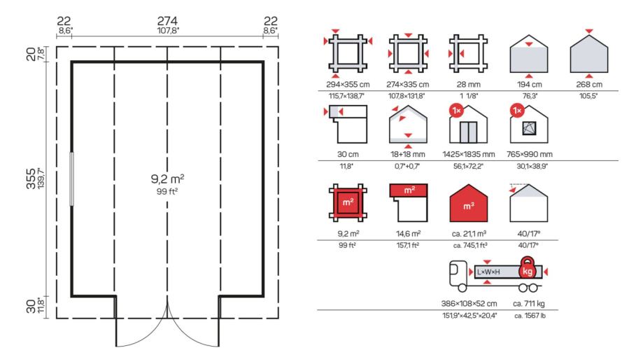 Vanjske dimenzije (širina x dužina): 294 x 355 cm