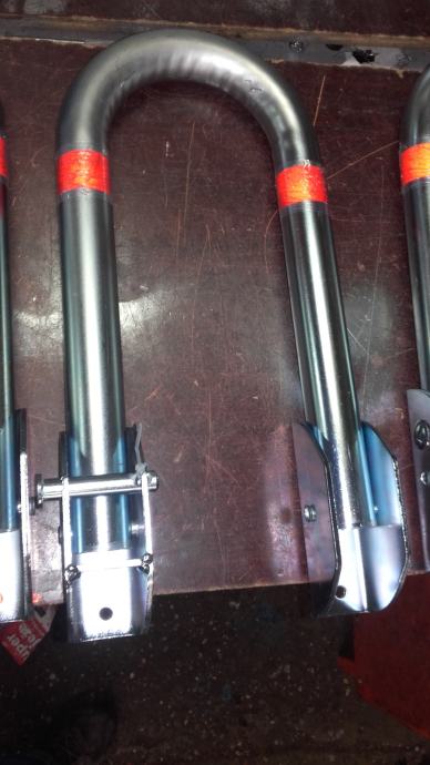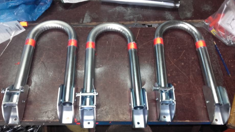 Čuvar parkinga,preklopna rampa za parking, u kompletu 4 vijka s tiplama, sigurnosni svornjak i lokot sa tri ključa. Galvanski cinčana + reflektirajuće naljepnice.