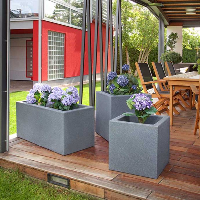Moderna pravokutna cvjetna korita TANGO namijenjena su za sadnju biljaka i grmlja. Hrapava pješčana površina korita daje koritu prirodan izgled.