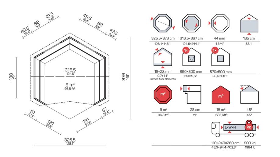 Set drvenih roštilj kućica debljine 44 mm uključuje sljedeće: