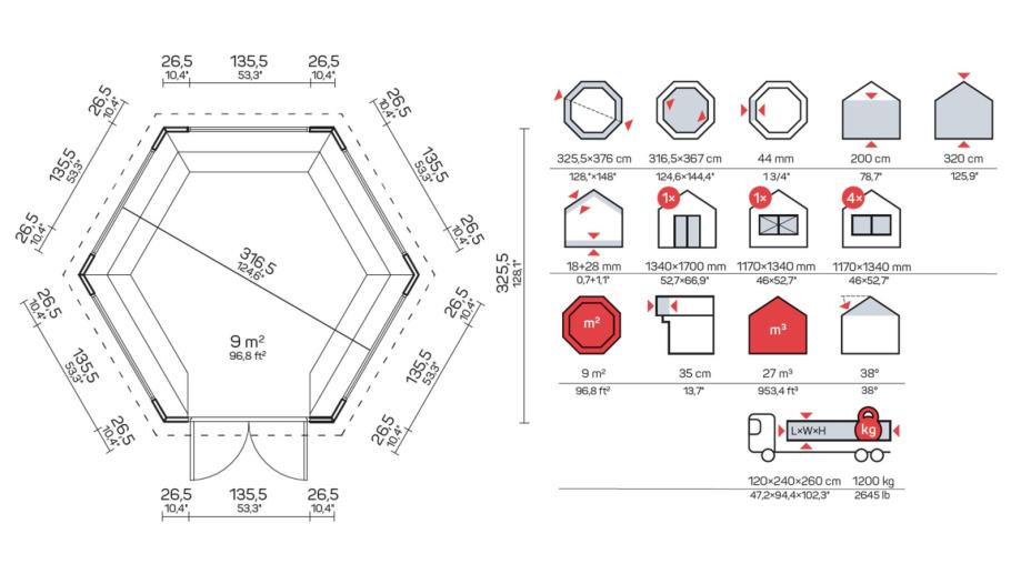 Set drvenih roštilj kućica debljine 44 mm uključuje sljedeće: