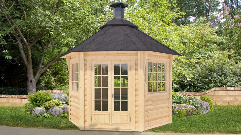 Sve drvene roštilj kućice od 44 mm, sadrže standardni set: vrata, prozore i opremu za