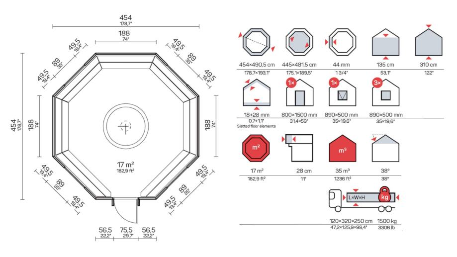 Strop i pod izrađeni su od profilnih ploča debljine 18 ili 28 mm