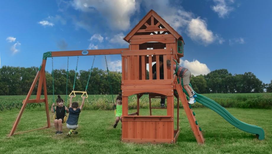 DRVENA KUĆICA ZA DJECU PROFESIONALNA XL - SA LJULJAČKOM, TOBOGANOM