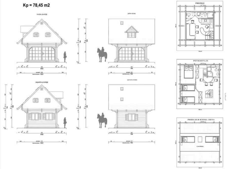zatvaranjem prizemlja proširivo na 78m2 kp.